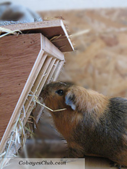 une sieste dans le foin. Il faut avouer, que même avec un ratelier, nos petits malins de cochons d'Inde ont vite fait d'en faire descendre une bonne partie au pied du ratelier,