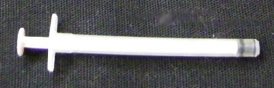 Charger une seringue de 2,5mL ou de 5mL et l’emboiter dans une seringue de 1mL dont on aura retiré le piston. La seringue de 1mL permet de réguler plus facilement le débit.