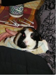 - Bien sur, laisser à demeure ses granulés et son foin. Si le cochon d'inde a subi un parage dentaire, penser à humecter les granulés. Parfois ça aide.